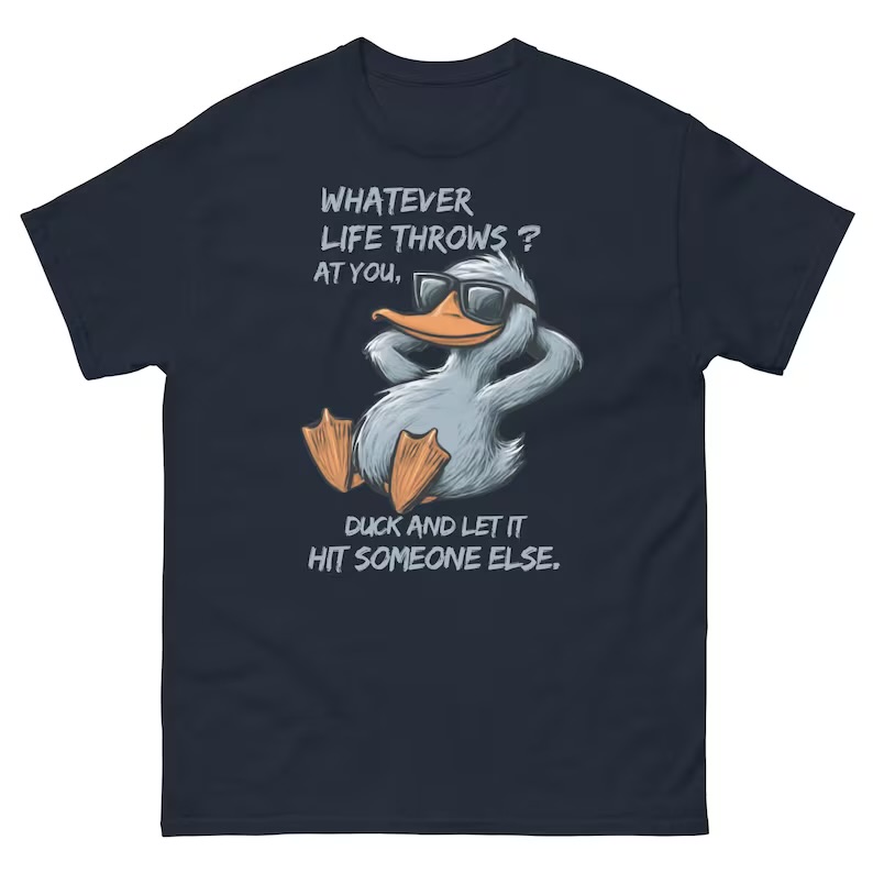 Funny Duck T-Shirt | Humor Quote Tee Whatever Life Throws | Cool Cartoon Duck Shirt | Sarcastic Graphic Gift for Him Her
