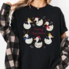 Festive Duck Parade T-Shirt | Christmas Ducks in Santa Hats & Scarves | Cute Holiday Design | Unisex | Christmas Gift Idea